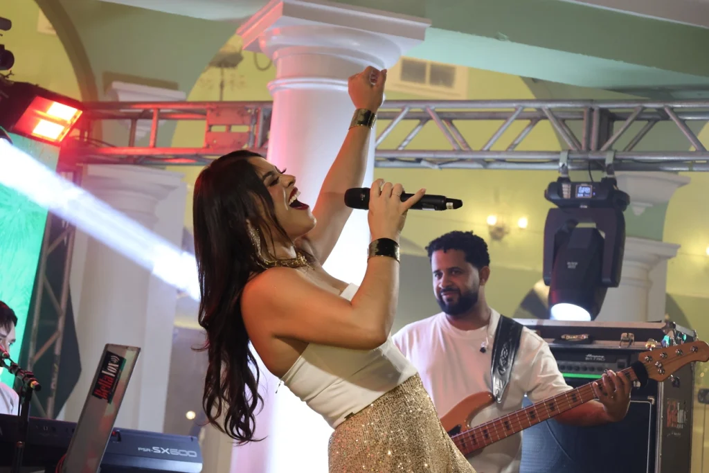 No palco, a noite ganhou ainda mais brilho com shows cheios de energia, embalados por Naiara Ferrer, BellaVox e DJ Felipe Gavagnae, que conduziram o público do início da festa até os primeiros minutos de 2026, em clima de animação, música e celebração coletiva.