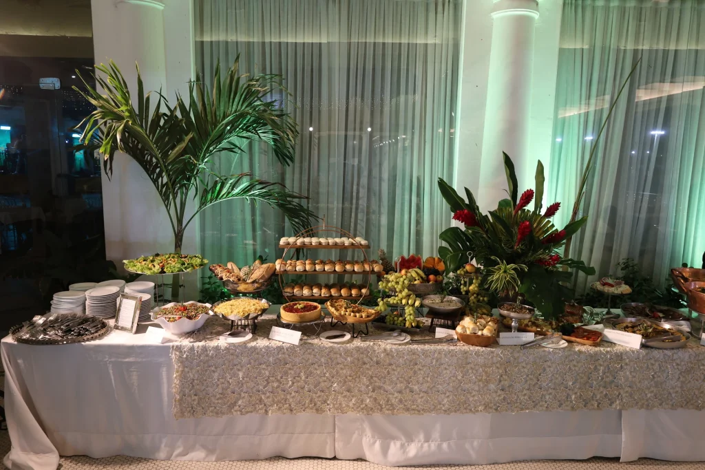 O jantar foi assinado pelo Ilmar Buffet, um dos mais tradicionais e respeitados buffets de Fortaleza, reconhecido pela excelência gastronômica e pelo cuidado em cada detalhe. Servido durante toda a noite, o menu ofereceu variedade, qualidade e sofisticação, proporcionando uma experiência completa aos convidados e elevando ainda mais o padrão da celebração. A presença do Ilmar Buffet reforçou o compromisso do Réveillon Náutico com conforto, sabor e momentos memoráveis à mesa.
