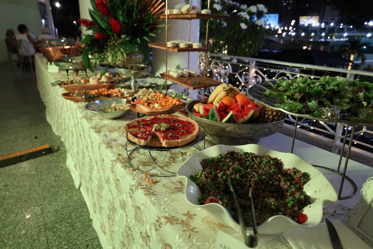 O jantar foi assinado pelo Ilmar Buffet, um dos mais tradicionais e respeitados buffets de Fortaleza, reconhecido pela excelência gastronômica e pelo cuidado em cada detalhe. Servido durante toda a noite, o menu ofereceu variedade, qualidade e sofisticação, proporcionando uma experiência completa aos convidados e elevando ainda mais o padrão da celebração. A presença do Ilmar Buffet reforçou o compromisso do Réveillon Náutico com conforto, sabor e momentos memoráveis à mesa.