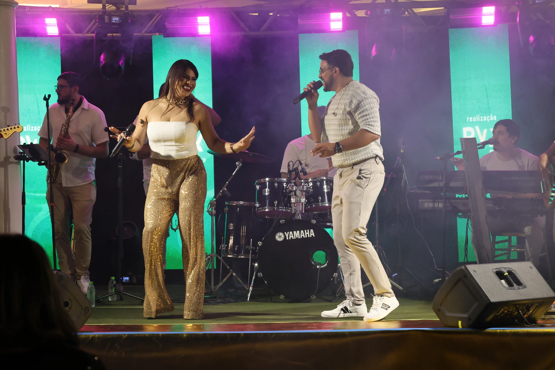 No palco, a noite ganhou ainda mais brilho com shows cheios de energia, embalados por Naiara Ferrer, BellaVox e DJ Felipe Gavagnae, que conduziram o público do início da festa até os primeiros minutos de 2026, em clima de animação, música e celebração coletiva.